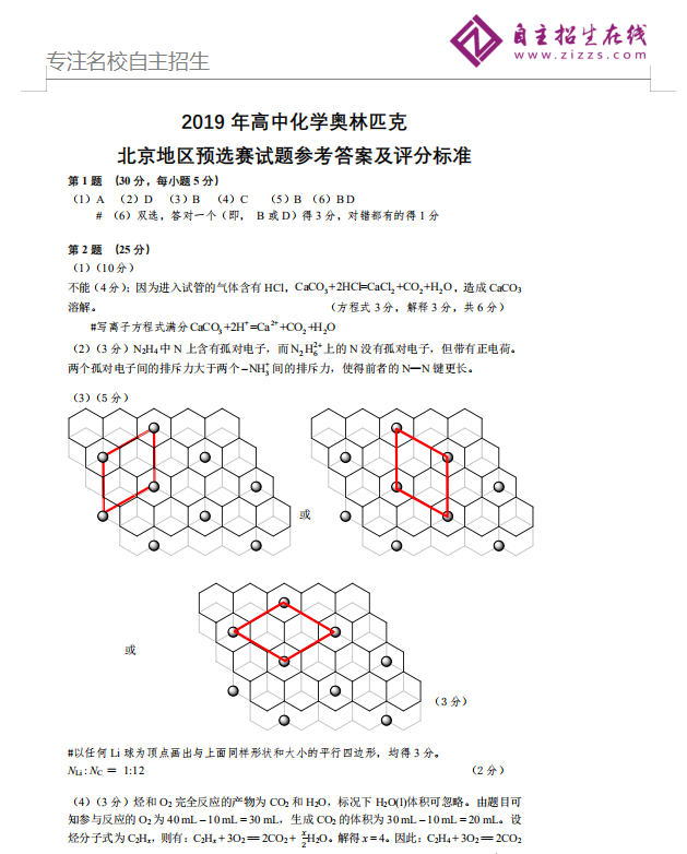 4月14日上午,2019年高中化学奥林匹克北京地区预选赛进行,本次考试共包括10道大题。自主选拔在线团队整理了本次考试参考答案及评分标准,供考生参考。