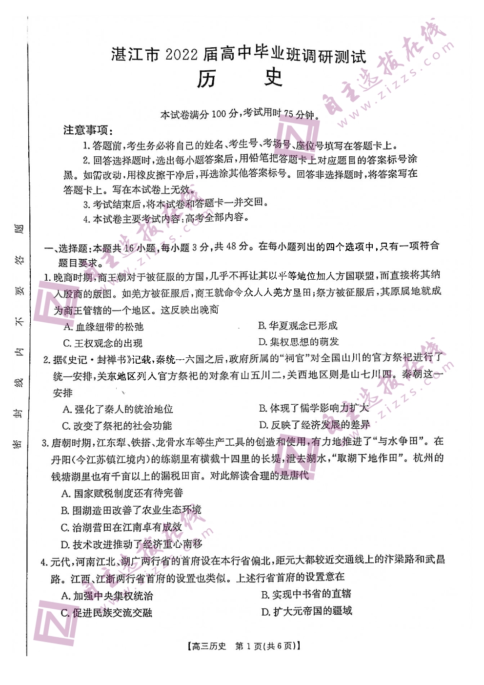 自主选拔在线团队收集整理了广东省金太阳2022届高三10月联考历史试题及答案,供大家参考。
