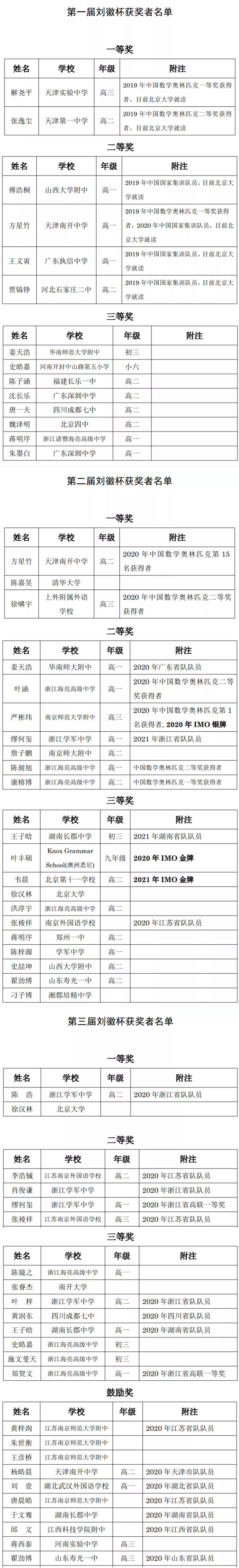 附二:前三届刘徽杯获奖名单