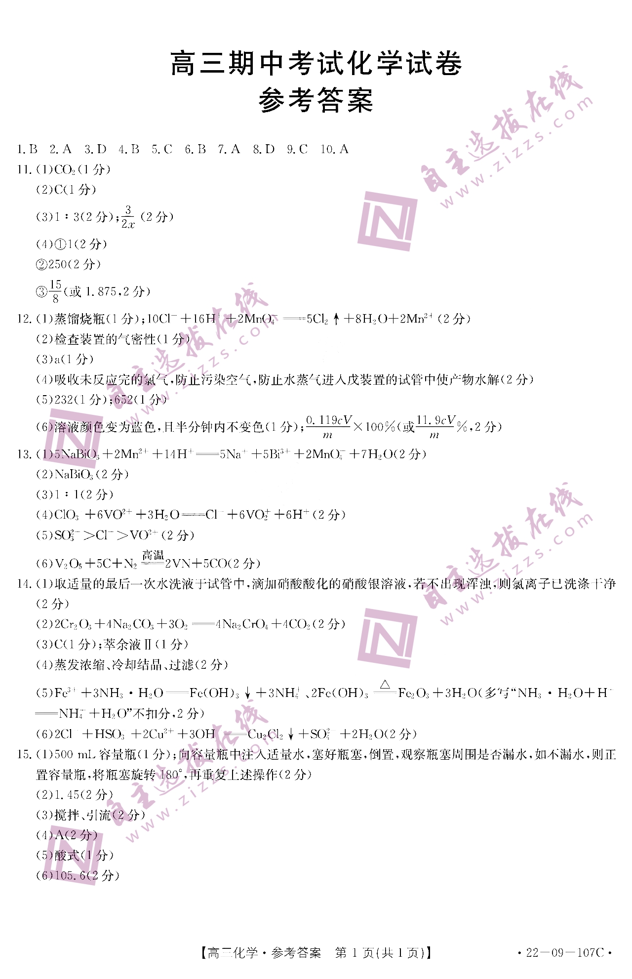 自主选拔在线团队收集整理了福建省2022届金太阳高三期中考化学试题及参考答案,供大家参考!
