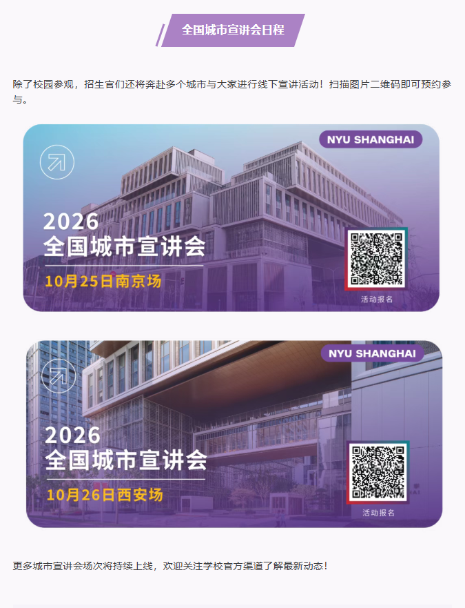 想了解2026年最新申请政策?想亲身体验“世界即课堂”的独特魅力?那就一定别错过11月的校园参观和全国城市宣讲会!