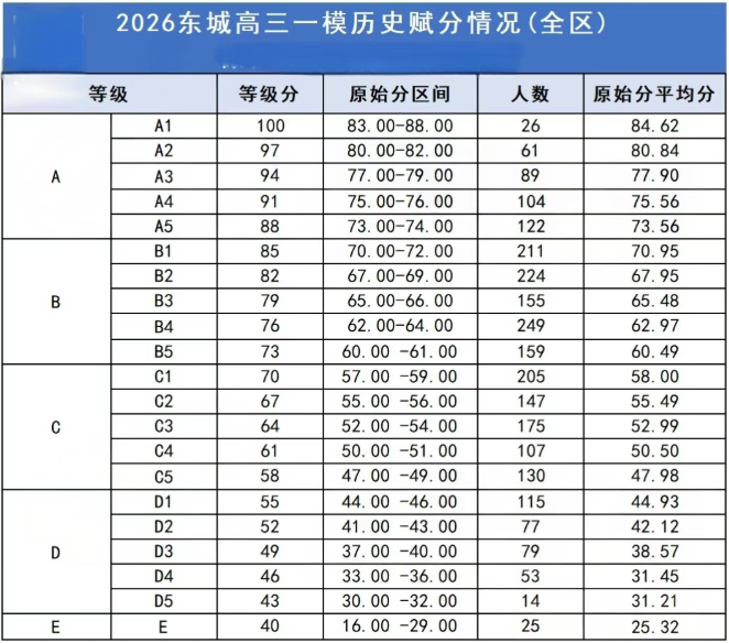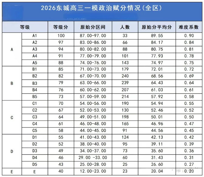 北京东城区2026届高三“一模”考试赋分表已正式发布!为帮助各位考生、家长和教育工作者更清晰地了解各学科的赋分详情,自主选拔在线团队特此整理完整数据并附上解读,一起来看看吧!