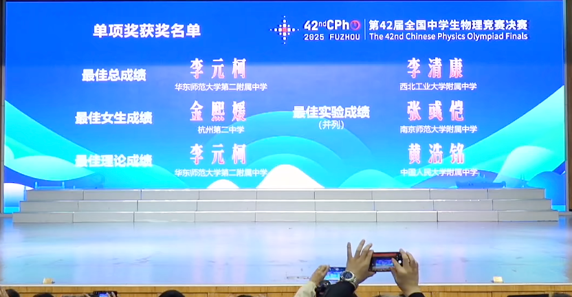 2025年第42届全国中学生物理竞赛决赛单项奖获奖名单