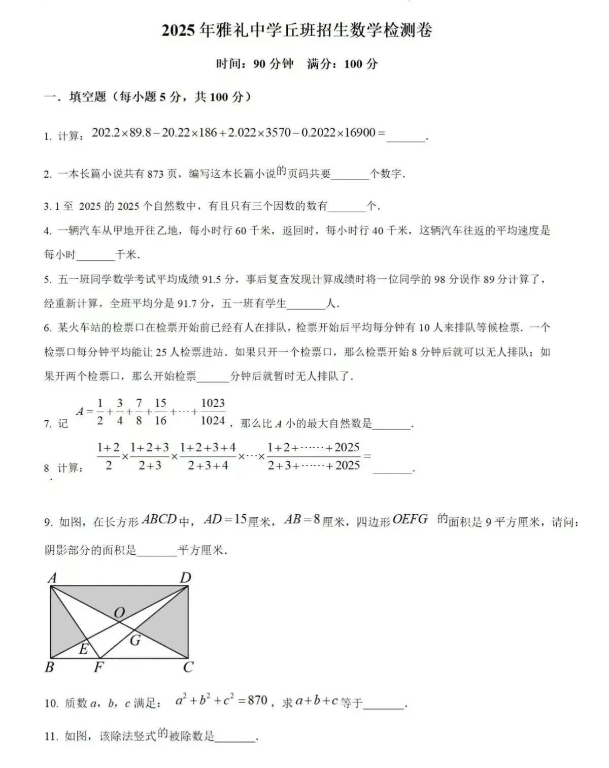 2025年长沙雅礼中学丘班选拔考试试题今日出炉,自主选拔在团队整理2025年长沙雅礼中学丘班选拔考试试题相关内容,一起来看!