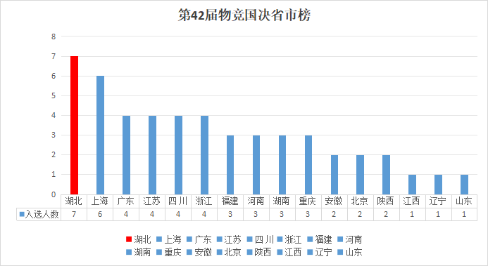 从榜首梯队来看,湖北省以7人入选、占比14%的绝对优势位居全国第一,彰显了其在物理竞赛人才培养上的深厚底蕴和领先地位。紧随其后的是上海市(6人,12%),作为直辖市表现十分突出。而广东、江苏、四川、浙江四省并列第三,各有4人入选(合计占比32%),共同构成了国家集训队的主力军,这些省份均为公认的教育资源丰富、竞赛体系成熟的地区。