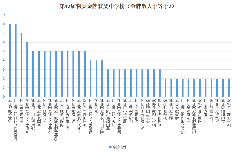 2025年第42届中学生物理决赛金牌获奖中学榜