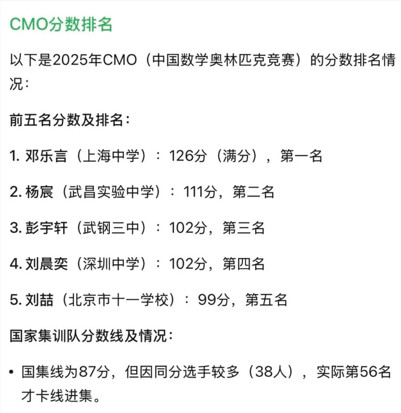 本届CMO共有700余名选手参赛,223人获得金牌,前60名选手获得清华北大保送资格并入选国家集训队。AI目前虽未超越人类选手最高分,但其表现已远超大多数参赛者,甚至超过了许多金牌得主,本次金牌线为78分。