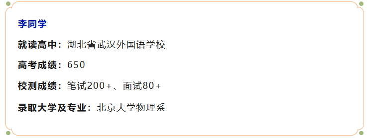 2026年强基计划备战已经开始!往年学姐学长的经验不仅能够提供更详细备考攻略,还能让低年级考生在报考强基的过程中避免“踩坑”,给下一届考生很大的帮助!今天为大家分享来自湖北省武汉外国语学校的李同学的强基备考经历。他高三上获得物理竞赛国奖,利用高考前最后5个月高效备战薄弱科目,最终以高考650分的成绩上岸北京大学强基计划!一起来看他是如何做的?