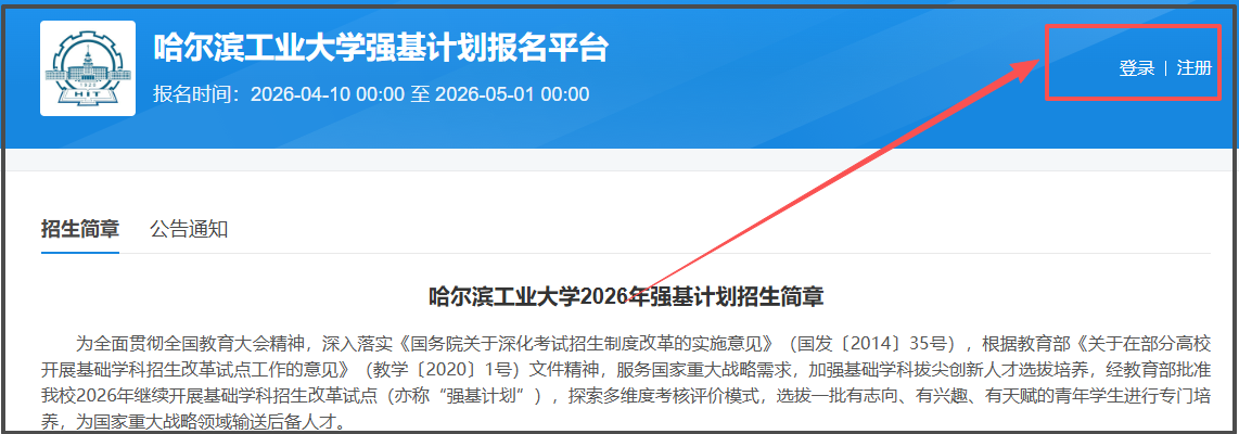 另外,考生可直接访问教育部统一的“阳光高考特殊类型招生信息服务平台”(https://bm.chsi.com.cn/),完成注册登录后,在“强基计划”栏目中选择哈尔滨工业大学进行操作。