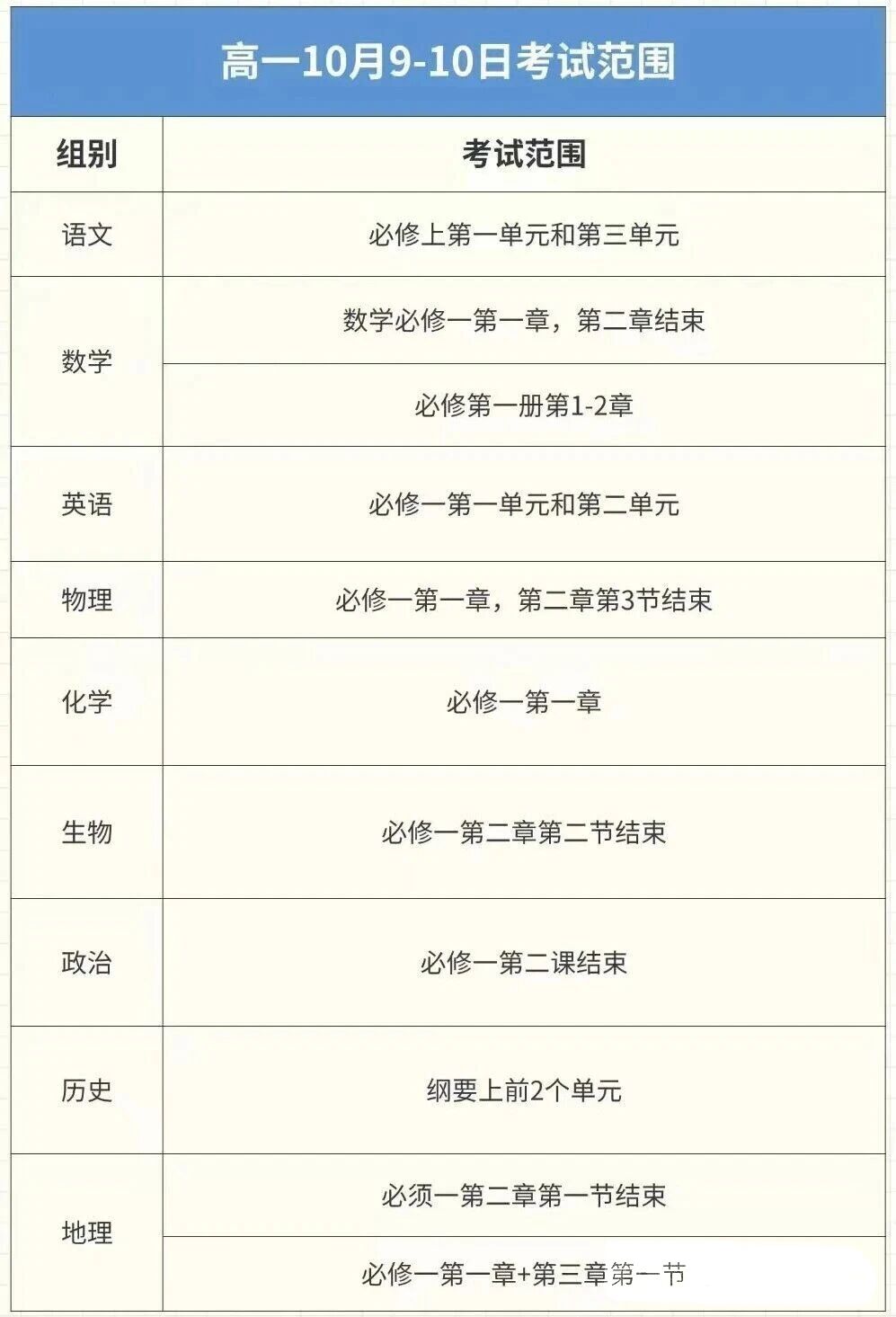 辽宁高一年级10月联考安排及考试范围正式公布,考试将在10月9日至10日进行,为期两天。那么,这次考试的范围究竟如何呢?