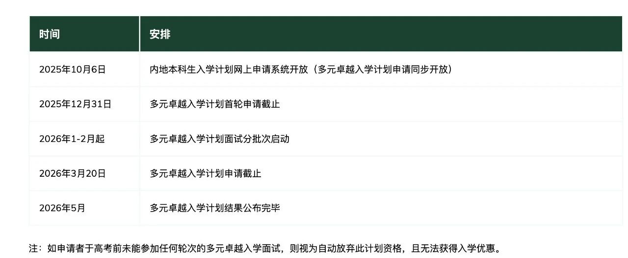 申请人完成內地本科生入学计划的申请后,可继续申请多元卓越入学计划。通过「多元卓越入学计划」,香港大学将对申请人进行提前选拔,申请人将有机会提前参与面试,更有机会获得入学优惠。自主选拔在线团队整理香港大学2026年多元卓越入学计划相关内容,一起来看看吧!