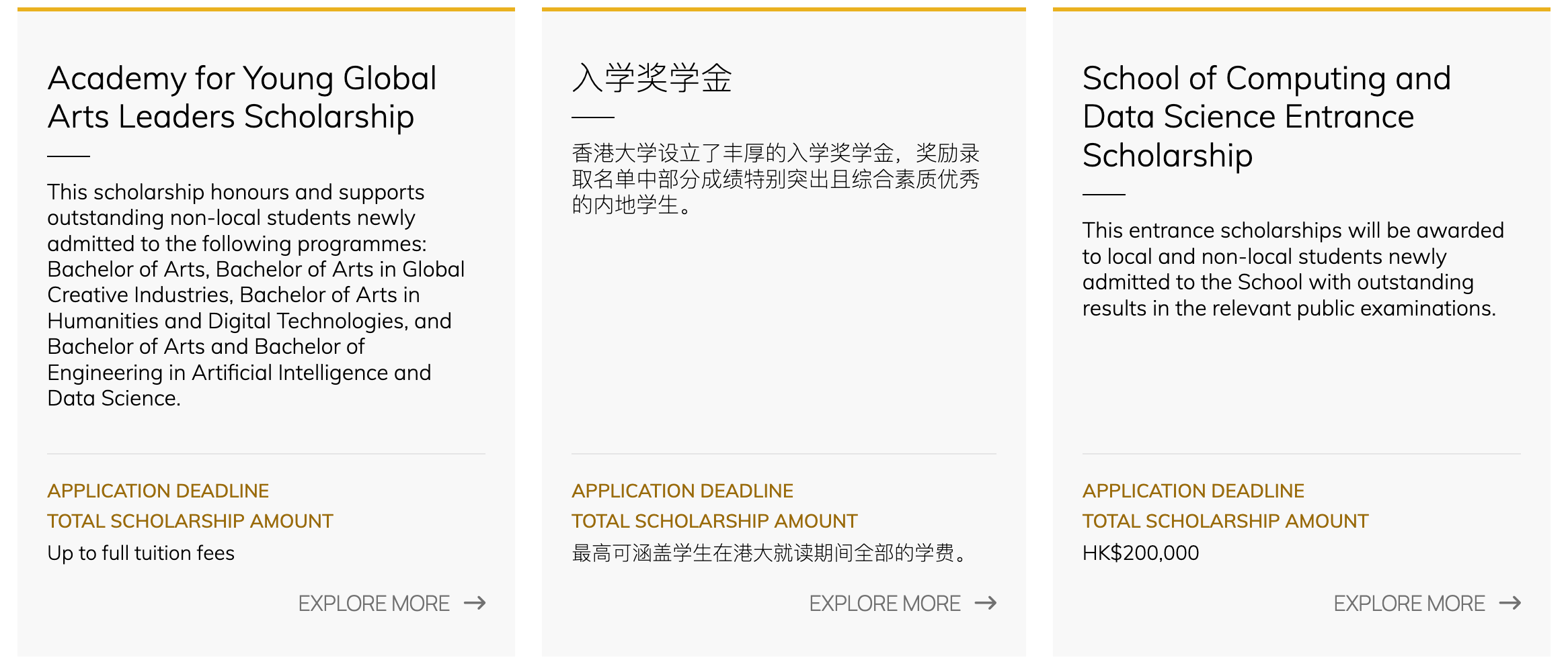 香港大学设立了丰厚的入学奖学金,奖励录取名单中成绩优异且综合素质优秀的学生,最高入学奖学金将涵盖学生在港大就读期间的学费及生活费。作为一所多元化的国际知名学府,香港大学力求让优秀的学生可以安心享受世界一流的教育。